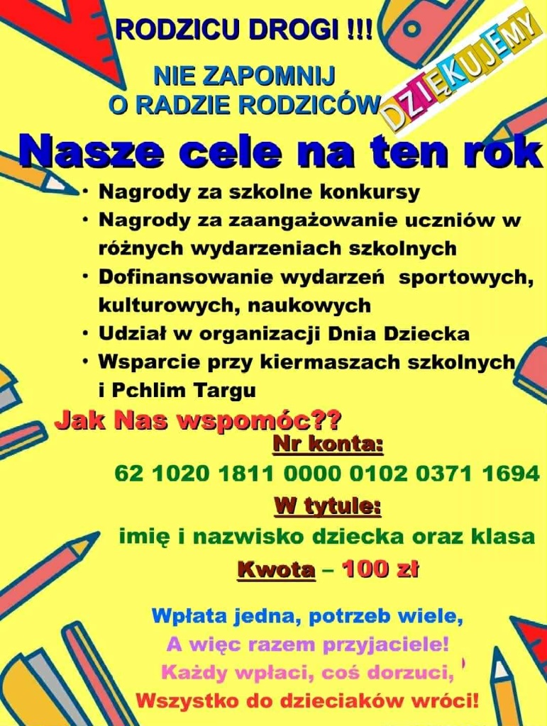 Wpłata na Radę Rodziców w roku szkolnym 2025/2026 wynosi 100 zł